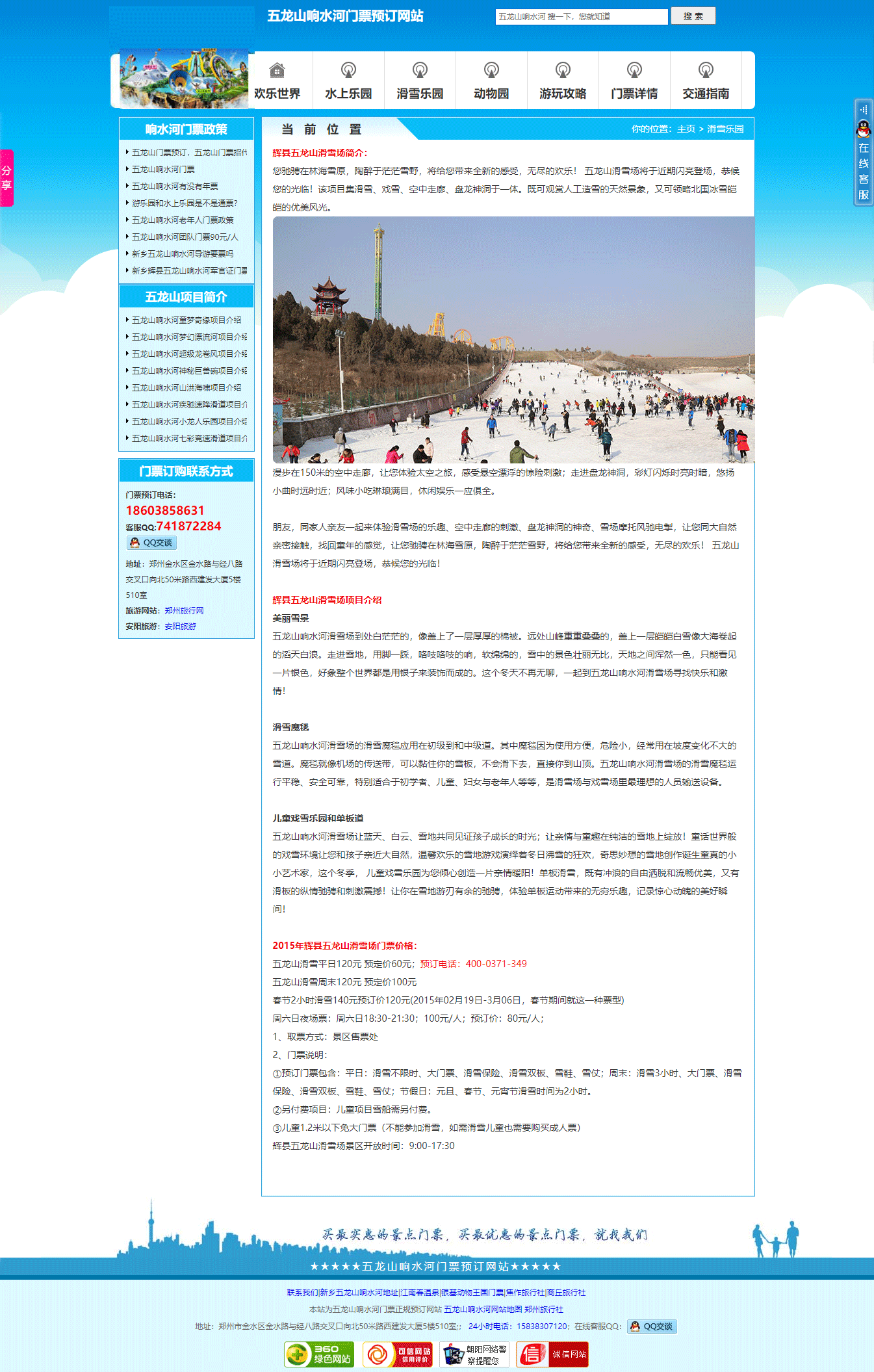 五龙山响水河位于河南辉县常村镇,是河南春之谷投资承建的集主题乐园,水上乐园,动物王国,滑雪四大休闲娱乐为一体的大型旅游度假区。公司成立之初,急需官网和小程序作为展示窗口。